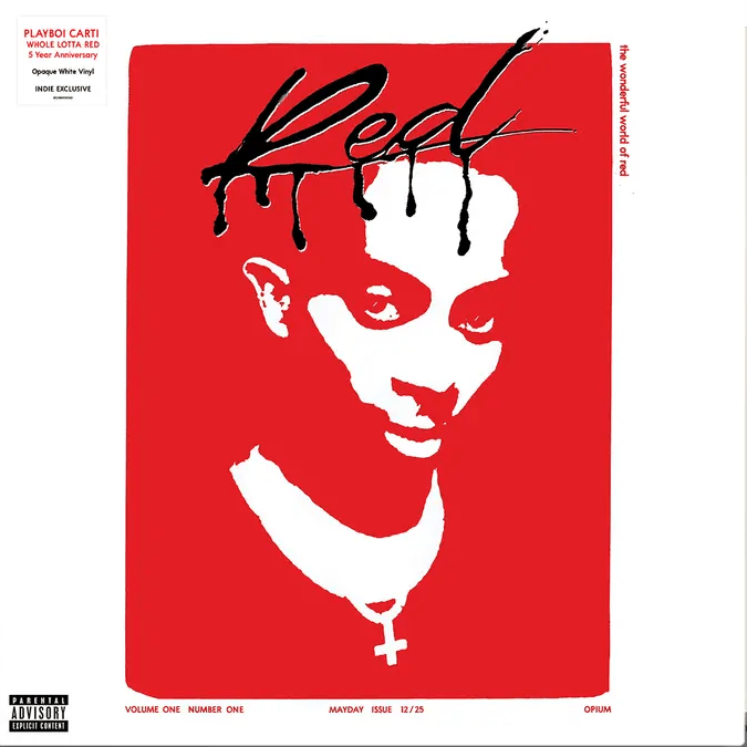 To commemorate the 5-year anniversary of Playboi Carti’s album “Whole Lotta Red,” he presents a limited quantity of special edition vinyl pressings with alternate cover art. This 2 LP set is pressed on “Rain Cloud” color vinyl.
